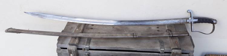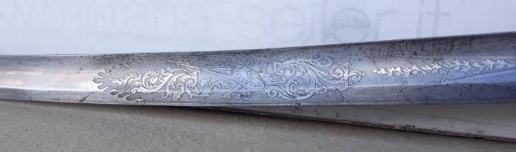 BELLA SCIABOLA MOD.55 CON INCISIONI ALL´ACIDO DI GRANDE QUALITA´ A MOTIVO DI TROFEI E FLORAMI.