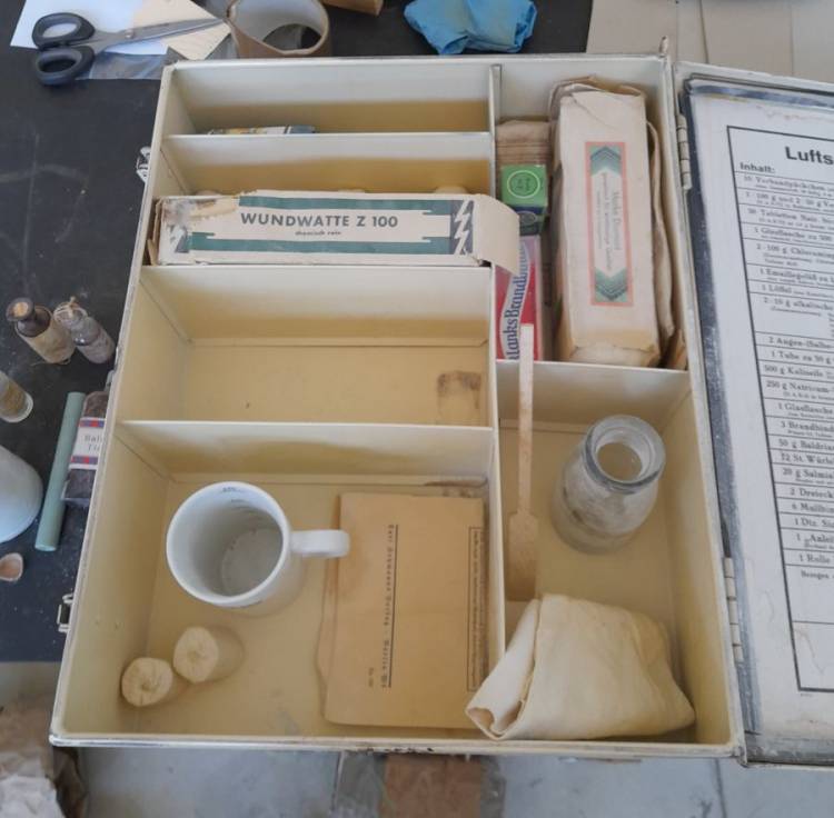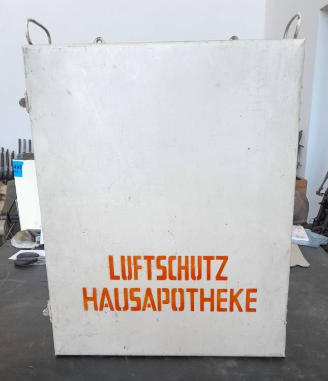 BELLA CASSETTA PORTAMEDICINALI IN METALLO VERNICIATO DI BIANCO, DELLA LUFTSCHUTZ.
