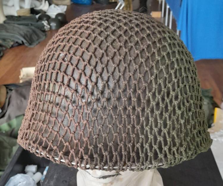 RARO ELMETTO M.1 DI PRIMO TIPO CON LE PARTI METALLICHE DEL SOGGOLO IN OTTONE. RETINA MIMETICA.