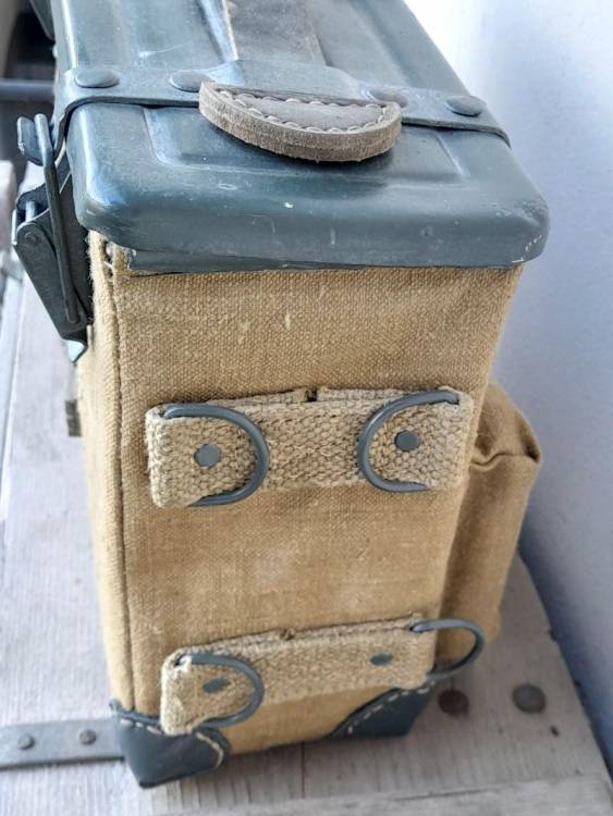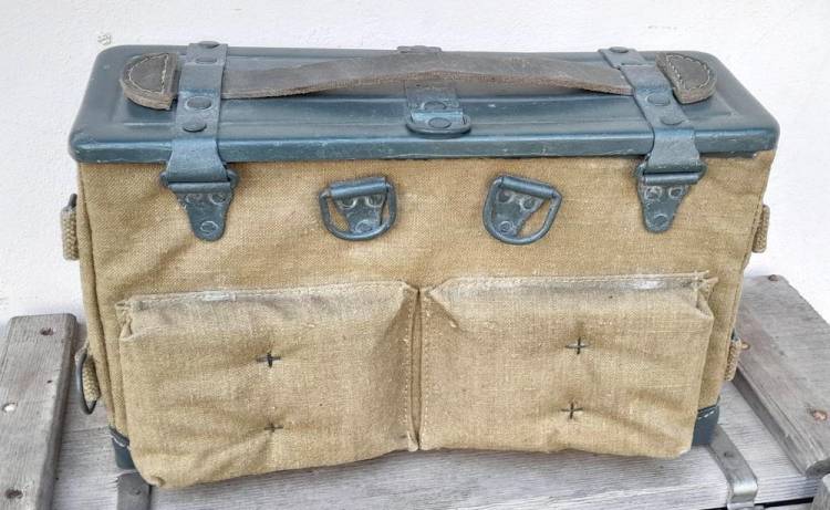 CASSETTA PORTAPIASTRINE SPALLEGGIABILE PER LA MITRAGLIATRICE BREDA 30. CONTIENE 16 PIASTRINE DELLA II GM E 320 COLPI IN CAL. 6,5x52.