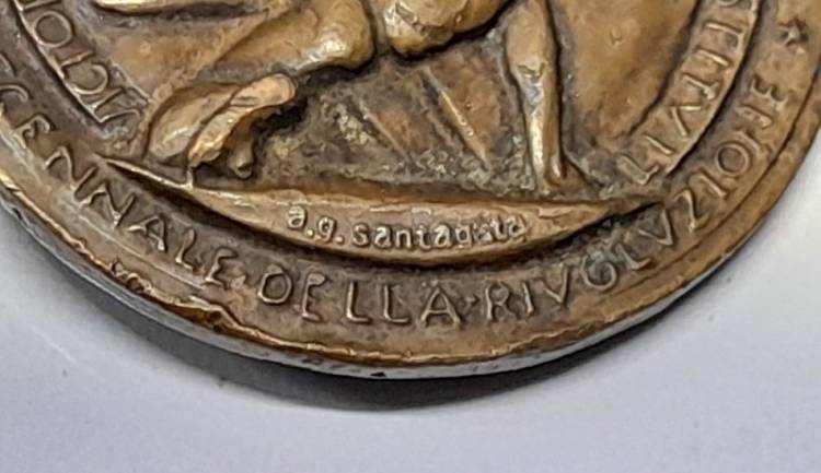 BELLA MEDAGLIA CONIATA IN BRONZO IN OCCASIONE DELL´ADUNATA DEI MUTILATI DEL 1932. AL RECTO, IL PROFILO DI BENITO MUSSOLINI CON FEZ. INCISIONE DELLO SCULTORE ´a.g. santagata´.