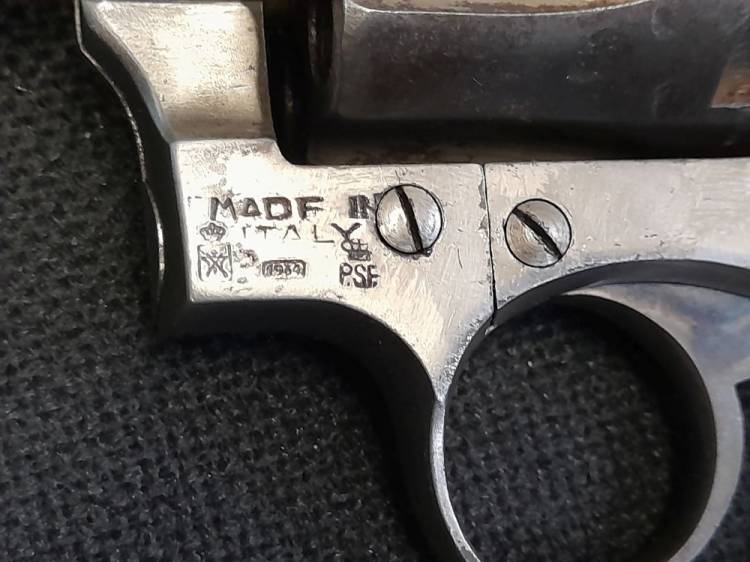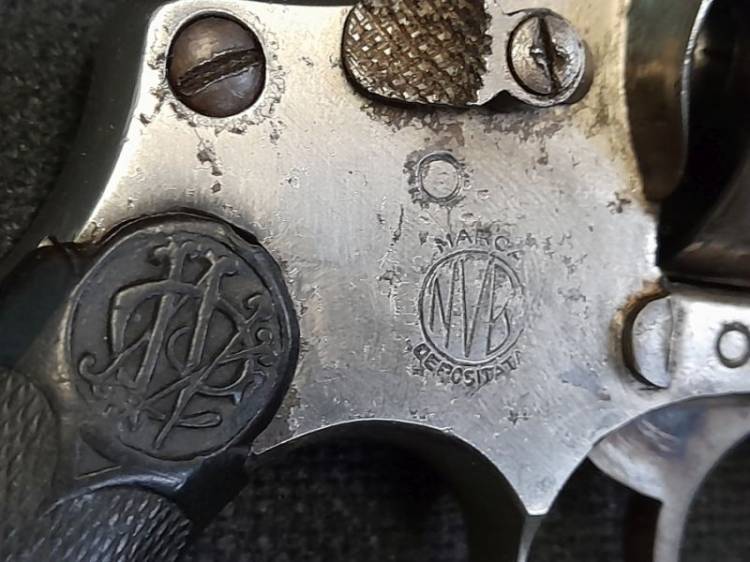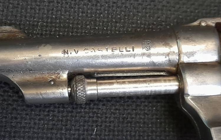 RARO REVOLVER PRODOTTO DALLA DITTA CASTELLI NEL 1934 IN CAL.8 LEBEL, NIKELATO. CONSERVA IL MOVIMENTO DEL CANE, DEL GRILLETTO, E LA ROTAZIONE DEL TAMBURO. ARMA MOLTO USATA DAGLI UFFICIALI DEL REI ANCHE SE FUORI ORDINANZA.