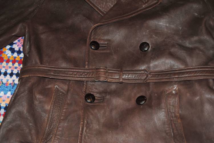 BELLISSIMO GIACCONE IN PELLE MARRONE DA MOTOCICLISTA DELLA PAI (Polizia Africa Italiana). COMPLETA DEI DUE FASCETTI IN VERSIONE FUTURISTA DA BAVERO. CONDIZIONI ECCELLENTI.