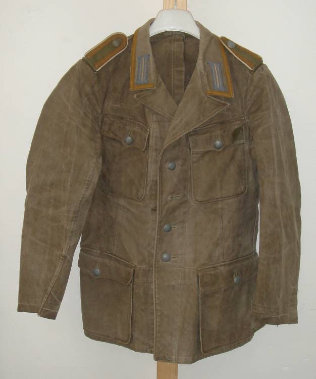 GIACCA MOD. 43 DAK - CONTINENTALE, COTONE VERDE - GRADO UNTEROFFIZIER MANCANTE DI AQUILA. ORIGINALE IN OGNI SUA PARTE.