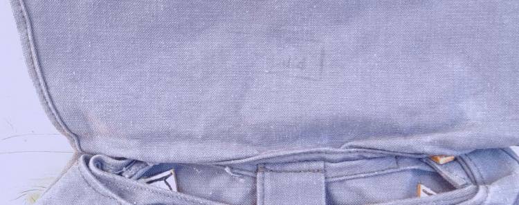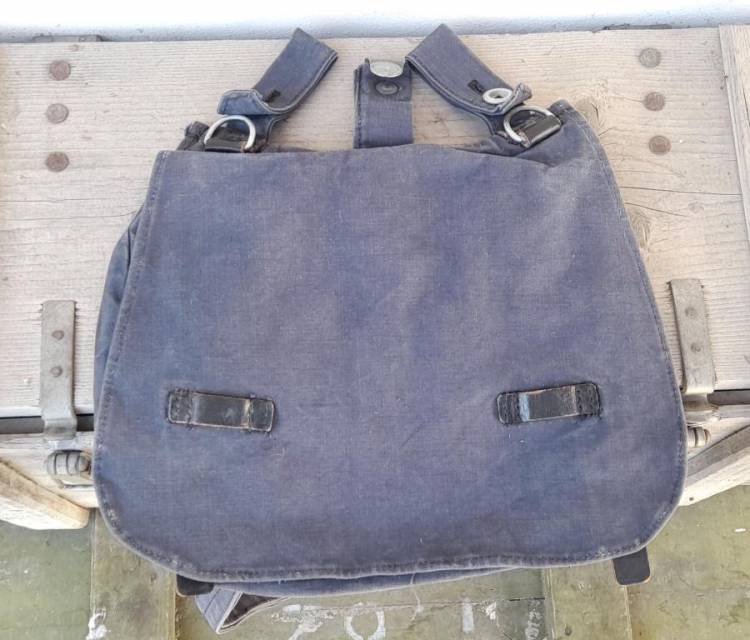 IN TELA BLU E RINFORZI IN CUOI NERO.