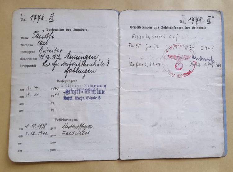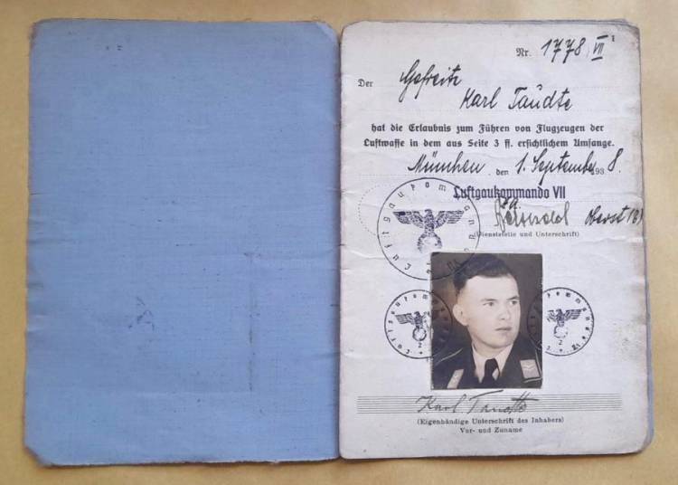 Brevetto di Volo e Libretto Militare del Sottufficiale Pilota Karl Taudte.