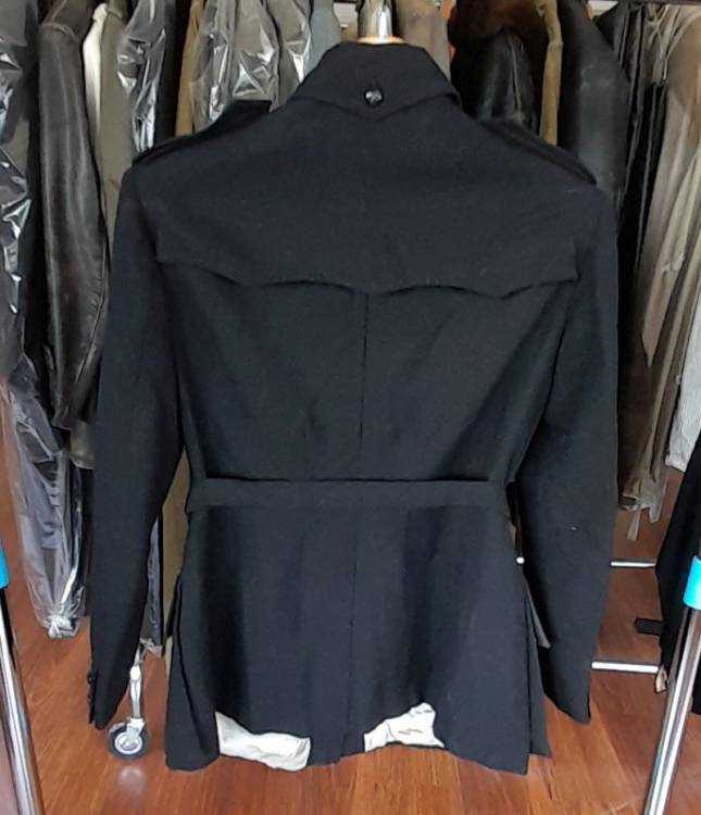 BELLISSIMA GIACCA DEL PNF TIPO SAHARIANA IN FRESCOLANA NERA. COMPLETA DI CONTROSPALLINE CON FASCIO IN CANUTIGLIA. BOTTONI NERI IN FRUTTO CON FASCIO A RILIEVO. CONDIZIONI PARI AL NUOVO.