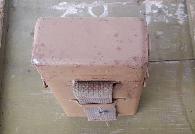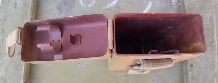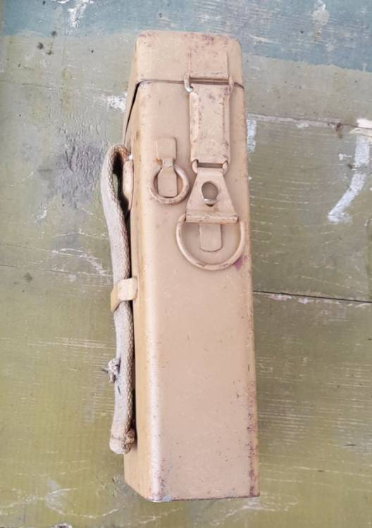 CUSTODIA IN METALLO CON VERNICIATURA GIALLO CONTINENTALE PER OTTICA zF.4. MARCATA ´jvb´ (Wessel-u. Müller, Luckenwalde, Brandenburg) CON ‘WaA 542´. CONDIZIONI MOLTO BUONE.