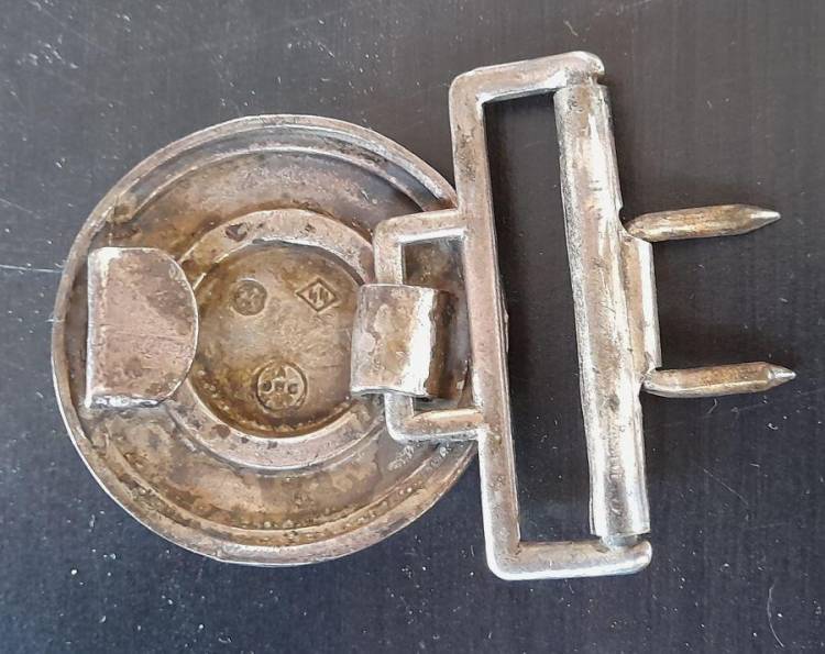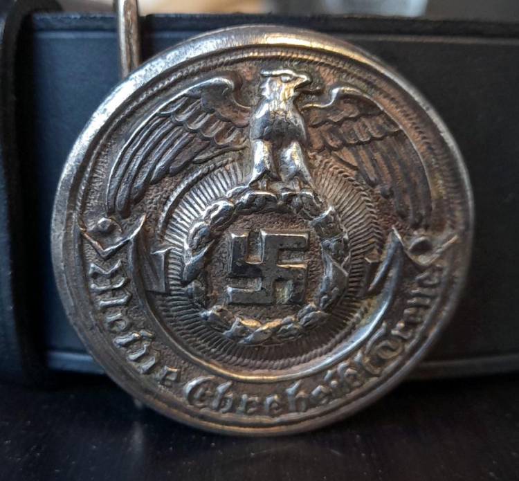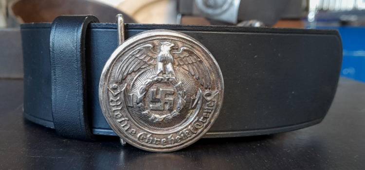 BELLISSIMO CINTURONE DA UFFICIALE DELLE SS. RIPRODUZIONE IN METALLO PESANTE CON CUOIO DI
