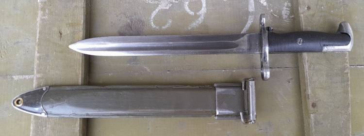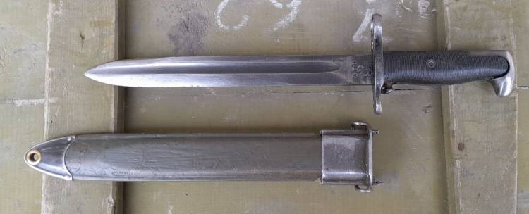 BAIONETTA US 1905 PRODOTTA NEL 1942 DALLA ´UFH´ E POI ACCORCIATA E PUNZONATA NEL 1943 DALLA ´AFH´ (AMERICAN FORK AND HOE - GENEVE, OHIO).