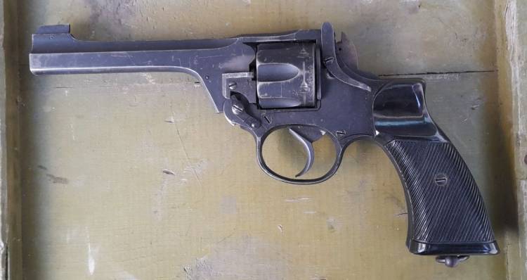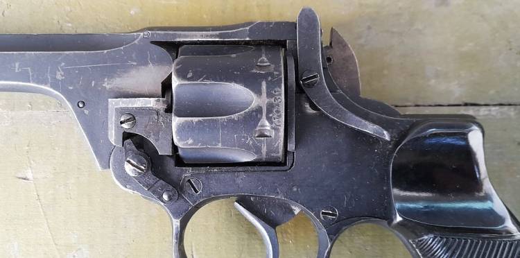 REVOLVER ENFIELD N° 2 MKI PER CARRISTI E COMMANDOS PRODOTTO NEL 1943. IL CANE VENIVA STONDATO PER NON PRESENTARE APPIGLI. IN SOLA DOPPIA AZIONE.