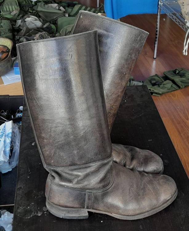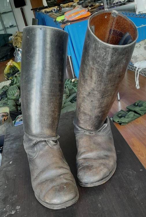 STIVALI DA UFF. DELLA WH/SS IN CONDIZIONI MOLTO BUONE. MARCATI CON IL NOME DEL FABBRICANTE E LA TAGLIA (´44´).