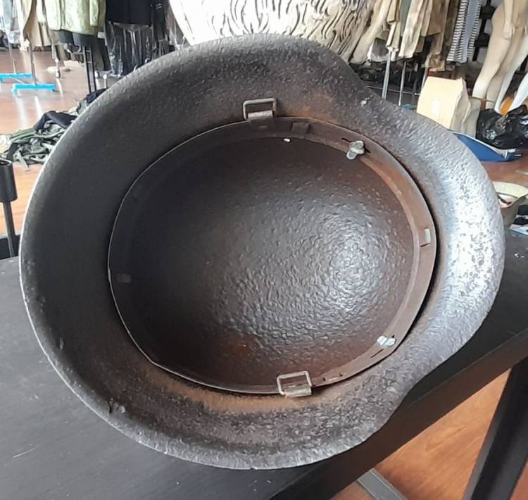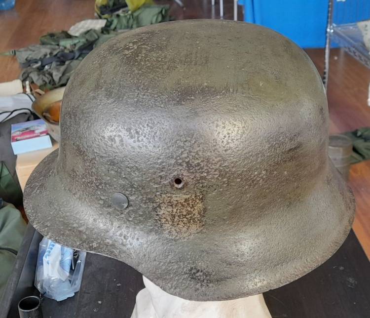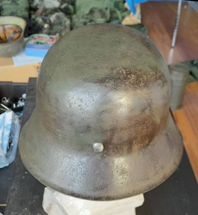 ELMETTO DELL´ESERCITO TEDESCO DELLA II GM CON COLORAZIONE VERDE. GUSCIO CON RIVETTI E FASCIONE INTERNO (´1944´). CONDIZIONI MODESTE.