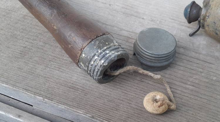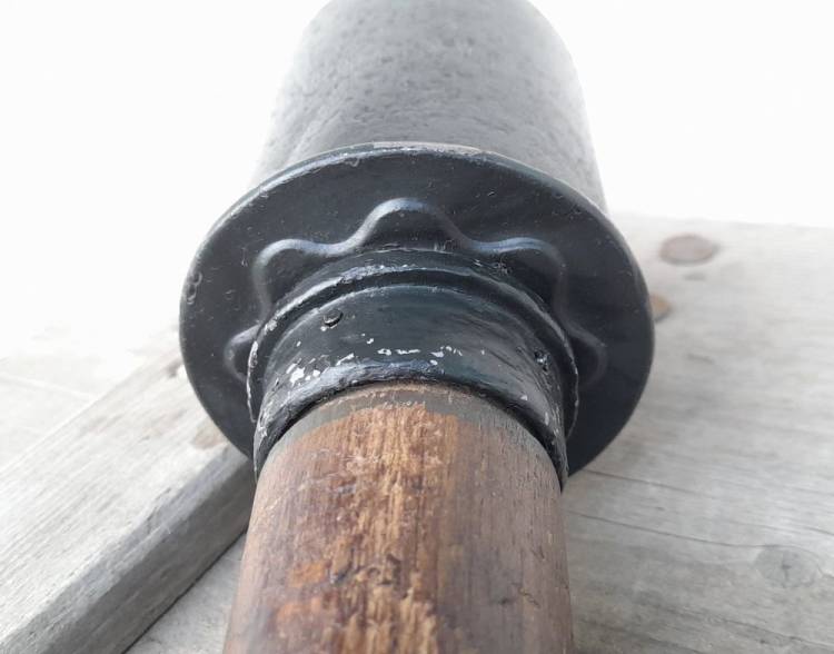 BOMBA A MANO TEDESCA DELLA II GM. IMPUGNATURA IN LEGNO COMPLTA DEL PALLINO IN CERAMICA. CONDIZIONI BUONE. MARCATA 1940.