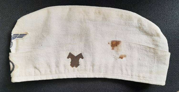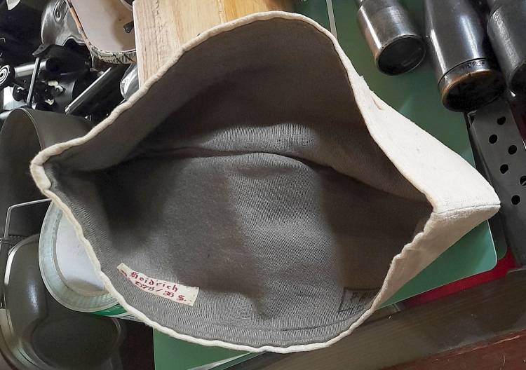 BUSTINA TROPICALE PER MARINAIO IMBARCATO (´S´) SUL SOMMERGIBILE ´U-BOOT 636´. RIPOSRTA SUL LATO LO STEMMA DEL SOMMERGIBILE, DUE TESTE DI CAVALLO, IN METALLO. ALL´INTERNO IL TIMRO DELLA MARINA E LA TARGETTA CUCITA COL NOME DEL MARINAIO.
