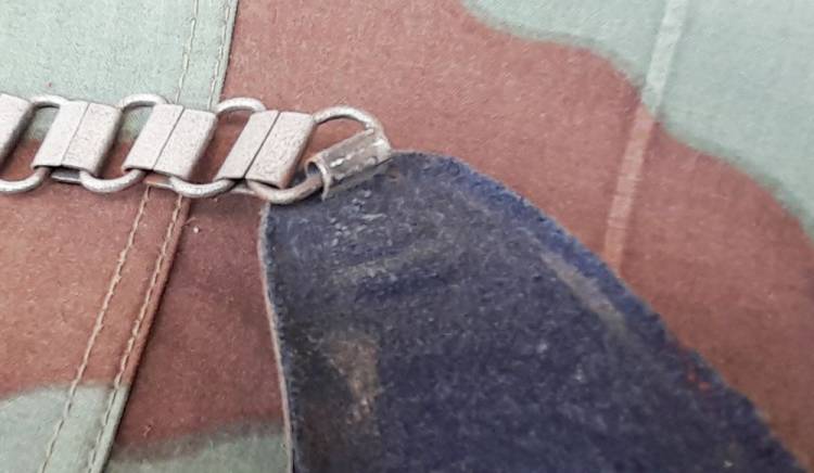RARISSIMA GORGIERA DELLA FELDGENDARMERIE DELLA LUFTWAFFE. INTERAMENTE IN FERRO, ANCHE LE CATENELLE. LA VERNICE CONSERVA ANCORA PARTE DELLA LUMINESCENZA. COPERTURA POSTERIORE IN PANNO