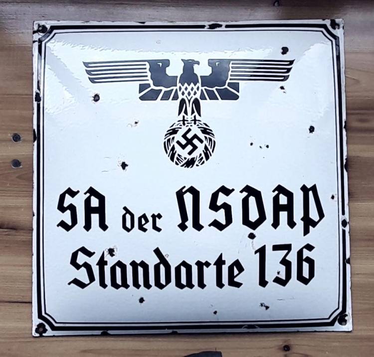 SA TARGA in Ferro Smaltato ‘SA der NSDAP Standarte 136’.