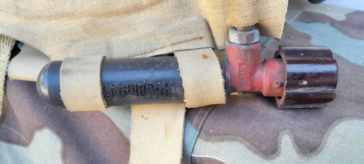 RARO SALVAGENTE DA SOMMERGIBILISTA PRODOTTO NEL 1942 DALLA ´qzt´. COMPLETO DI BOMBOLA PER ARIA COMPRESSA PRODOTTA NEL SETTEMBRE DEL 1944.