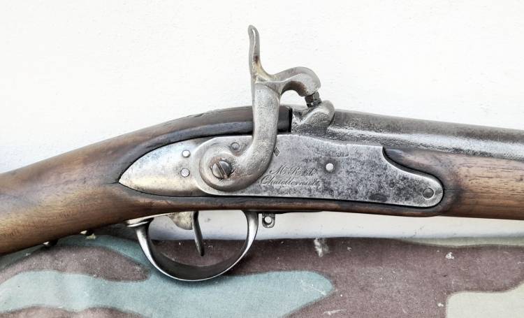 FUCILE MILITARE FRANCESE A PIETRA (PRODOTTO NELLA ´MANIFATTURA REALE DI CHATELLERAULT´) TRASFORMATO A LUMINELLO NEL 1822 E SUCCESIVAMENTE DA CACCIA (CAL.12). CONDIZIONI BUONE. CONSERVA IL MOVIMENTO DEL CANE E LO SCATTO.