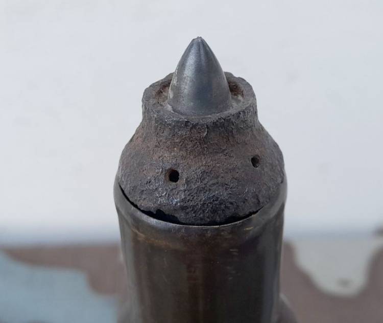 RARISSIMO PROIETTILE PER CANNONCINO Spzb.41 (Schwere panzerbuchse = Fucile anticarro pesante), ARMA A CANNA CONICA CHE IN VOLATA RIDUCEVA IL PROIETTILE A 20 mm. DANDO ALLA SUA ANIMA IN TUNGSTENO UN´ELEVATA VELOCITA´ E CAPACITA´ DI PRENOTAZIONE. IL CANNONCINO, ENTRATO IN LINEA NEL 1940, FU PROFOTTO IN POCO PIU´ DI 2000 ESEMPLARI, DATA LA TROPPA USURA DELLE CANNE E LA SEMPRE MAGGIORE BLINDATURA DEI CARRI AVVERSARI.