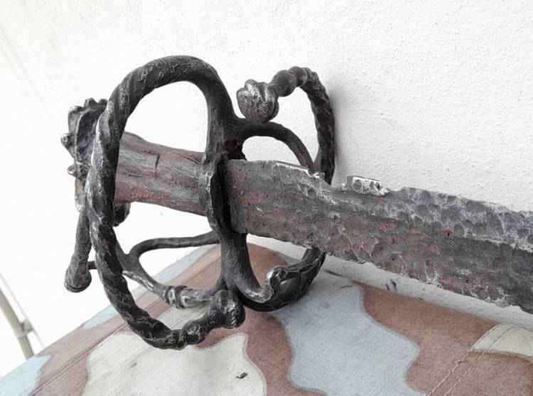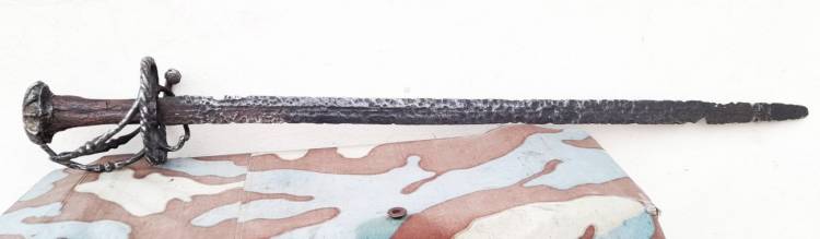 BELLISSIMA SPADA LUNGA DA CAVALLO PER UFFICIALE LANZICHENECCO. CONDIZIONI MODESTE DI CONSERVAZIONE MA ANCORA SOLIDA, ANCHE NELLA LAMA.