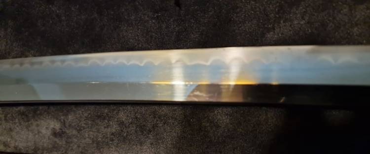 Lunghezza totale: 92,00 Nagasa: 64,5 cm. Habaki: rame Sori: 1,7 cm. Mekugi: 1 Larghezza all´Hamachi: 3,1 cm. Kasane: 0,7 cm.