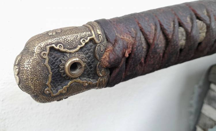 Lunghezza totale 77 cm. Nagasa 53,0 cm. Habaki laminato in bronzo. Sori 1,8 cm. Mekugi 1 Larghezza all´hamachi 2,55 cm. Kasane 0,58 cm.