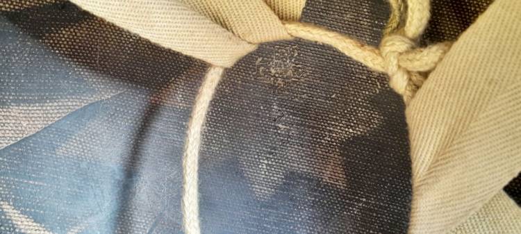 COMPLETO DI LINER, MARCATO. GANCI MOBILI, USATI DAL 1942. TAGLIETTO DELLA BORDATURA SUL DAVANTI.