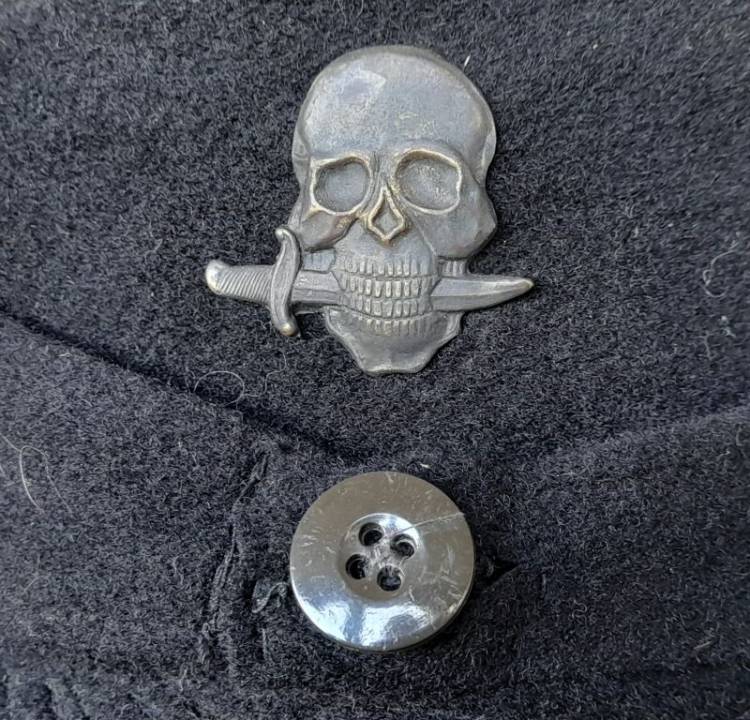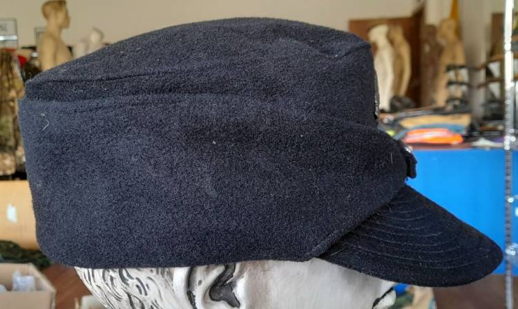BERRETTO DELLA GUARDIA NAZIONALE REPUBBLICANA IN LANA NERA. TESCHIO MOD. PICCOLO IN METALLO.