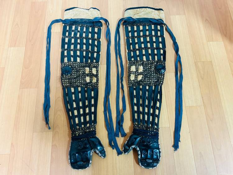 - Suneate (parastinchi), piastre metalliche verticali lunghe e sottili di tipo shino, unite da una maglia giapponese e poste su seta abbi