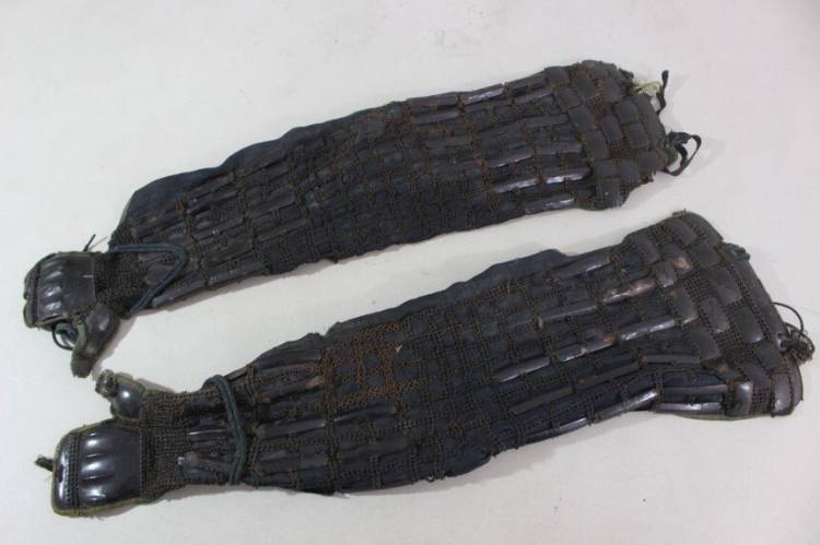 Kusazuri: rivestito in pelle laccato nero.