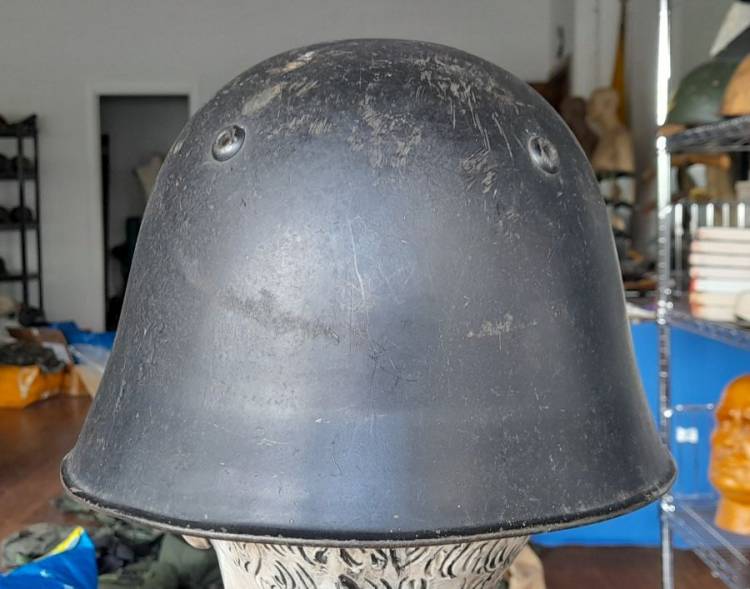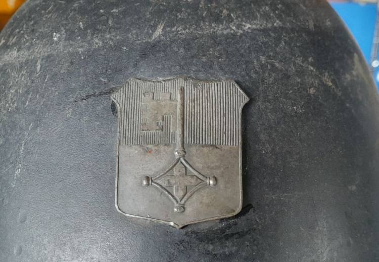 ELMETTO MOD. 18 DELL´ESERCITO SVIZZERO USATO ANCHE DAI POMPIERI, IN QUESTO CASO DI GINEVRA, COME DA STEMMA AMOVIBILE APPOSTO SUL FRONTALE DELLL´ELMO.