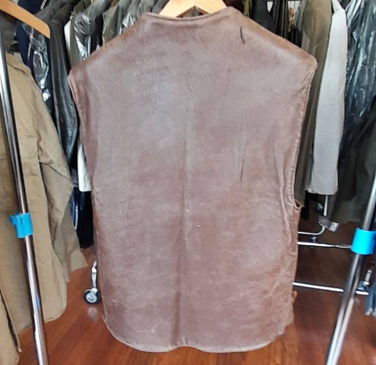 GILE´ IN MORBIDA PELLE MARRONE FODERATO IN LANA DA INDOSSARE SOPRA IL BATTLE-DRESS. IDEATO PER CARRISTI, MECCANICI E AUTIERI.