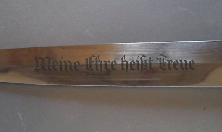 NEL DRITTO, INCISO SEMPRE AD ACIDO IL MOTTO DELLE SS: ´MEINE EHRE HAIST TREUE´ (Il mio Onore si chiama Fedeltŕ).