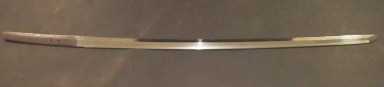 Katana realizzata da Osafune Kiyomitsu. Nagasa con doppia scritta 備前国住長船清光作 (Bizen kokuj yu Osafune Kiyomitsu saku) e 天文十二年八月 (Tenmon 12 Nien 8 Gatsu = 8° mese del 12° anno dell’era Tenbun = marzo 1544). Lunghezza Totale 97,7 cm. Lunghezza lama 71,5 cm. Sori 1 cm. Larghezza all´hamachi 2,8 cm. Peso 1,73 kg. n.2 mekugi-ana, hamon hiru-suguha.