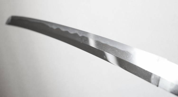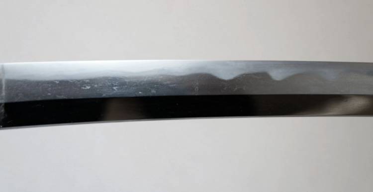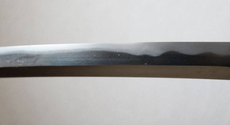 1 mekugi-ana. Splendido Hamon del tipo ´ko notare misto a suguha´.