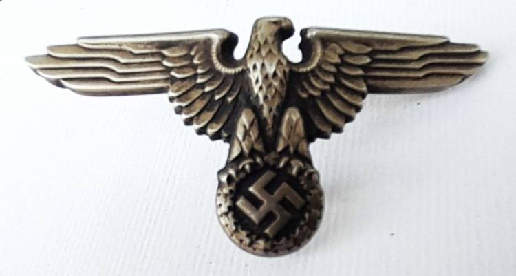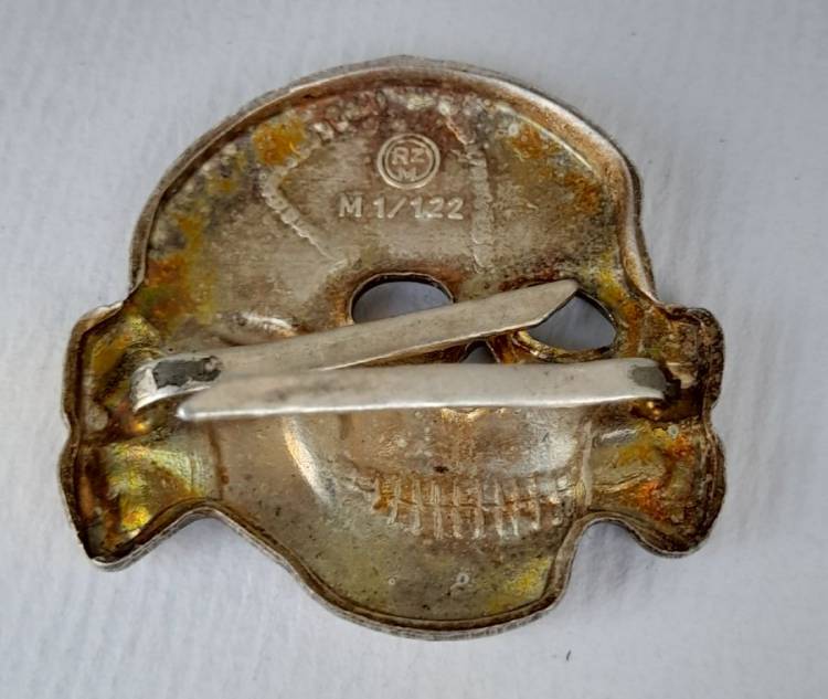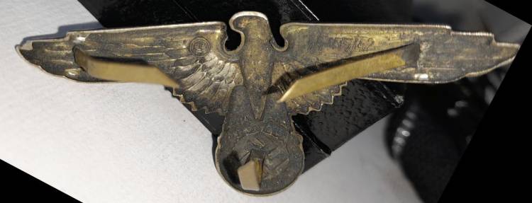 UN BUON ABBINAMENTO PER COMPLETARE UNO SCHIRMUTZE SS UFF. O TRUPPA. AQUILA A 3 GANCETTI IN OTTONE MARCATA ´RZM SS 475-42´ E TESCHIO A 2 GANCETTI MARCATO ´RZM 1/122´. CONDIZIONI ECCELLENTI.
