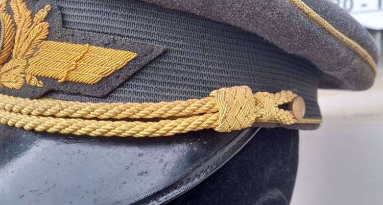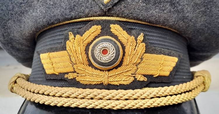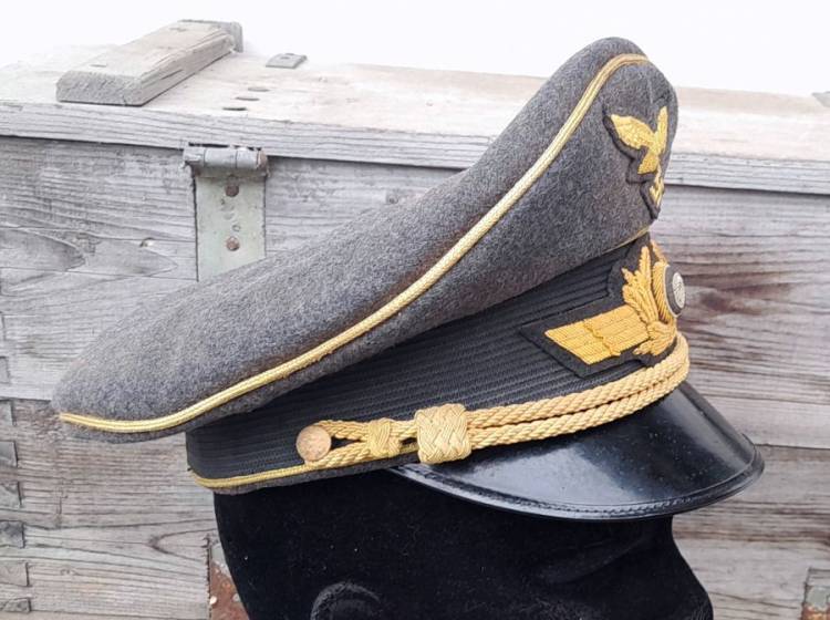 REALIZZATO IN PANNO BLU AVIAZIONE. FREGI SPLENDIDI. ALLUDA IN CUOIO. CONDIZIONI ECCELLENTI.