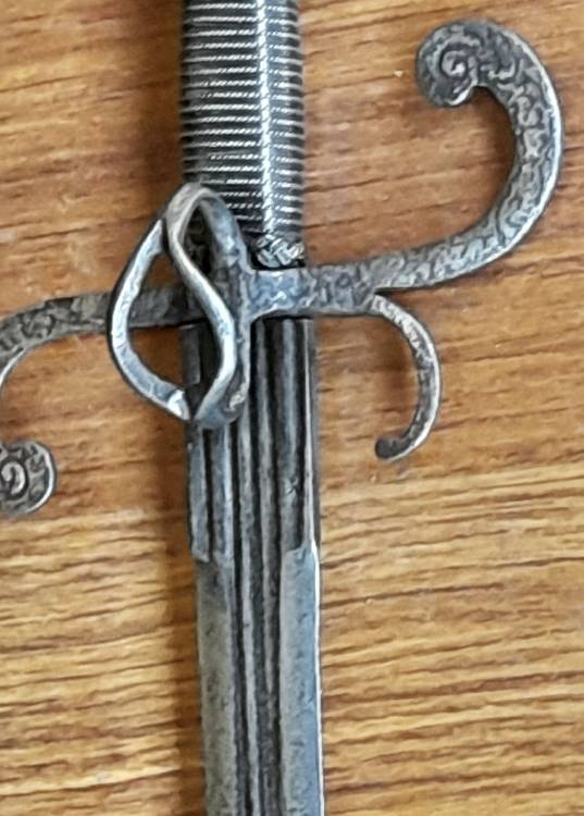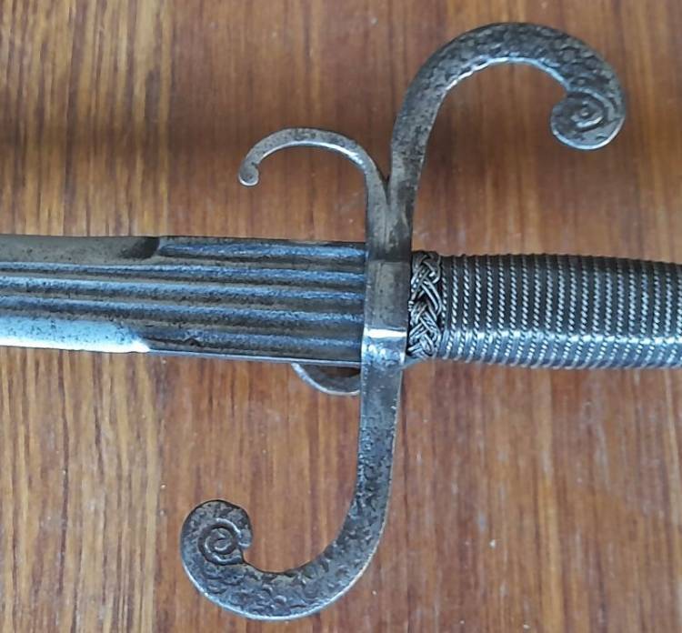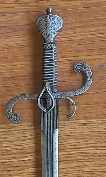 BELLA SPADA VENETA DA FANTE DI OTTIMA QUALITA´. ELSA A ´S´ E ANELLO. LAMA CON PUNZONE SUI DUE LATI.