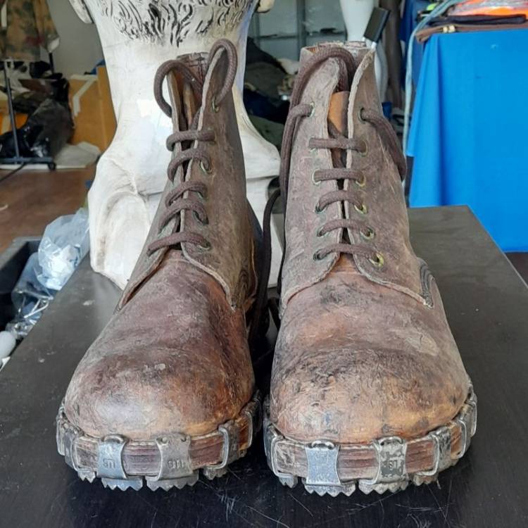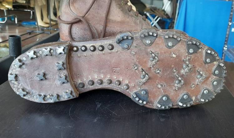SPLENDIDI SCARPONI DA MONTAGNA DELLA II GM DI PRIMO TIPO (´FINNISH PATTERN´) CON RAMPONI ´US´.