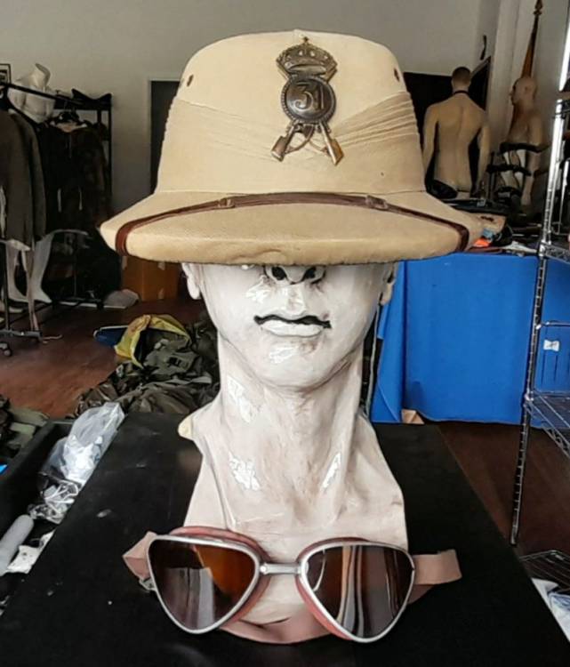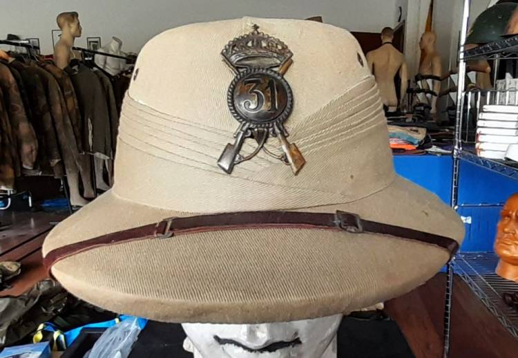 COMPLETO TROPICALE DI CAPITANO DEL 31° REGGIMENTO CHE HA OPERATO NEL FRONTE LIBICO-TUNISINO NEL 1942/43. E´ COMPOSTO DA SAHARIANA, PANTALONI, CASCO, OCCHIALI DA SABBIA, CINTURONE CON FONDINA, BORRACCIA.