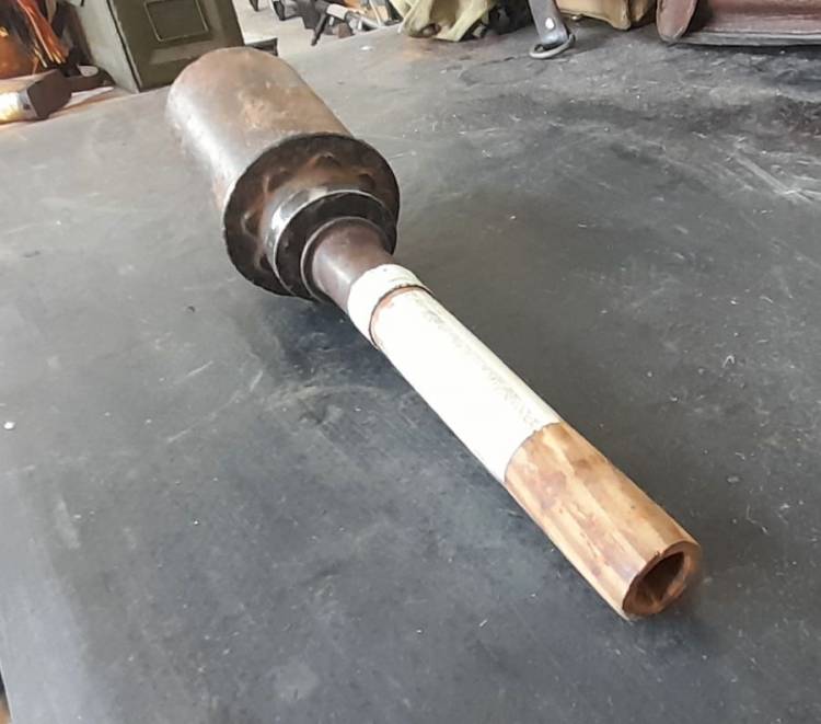 RARISSIMA GRANATA PER PISTOLA LANCIAGRANATE ´KAMPFPISTOLE Z´. LA TESTATA ESPLOSIVA ERA UNA NORMALISSIMA M.24 A CUI VENIVA AGGIUNTO UN CILINDRO DI LEGNO DA INSERIRSI NELLA CANNA DELLA PISTOLA.