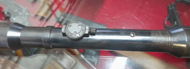 OTTICA PRODOTTA DURANTE LA II GM, PROGETTATA PER IL MAUSER K98k CON ATTACCHI LATERALI LUNGHI. FU COMUNQUE USATA ANCHE CON GLI ALTRI TIPI.