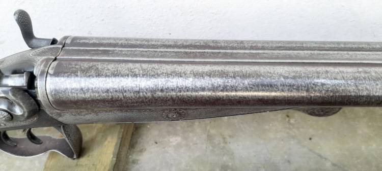 ARMA DI FINISSIMA FATTURA DELLA SECONDA META´ DELL´800. HA UN PARTICOLARE SISTEMA DI APERTURA A LEVA. CANNE A TORCIGLIONE.