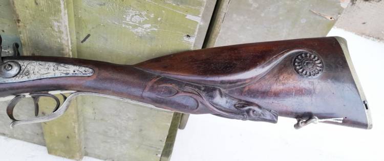 ELEGANTE DOPPIETTA AD AVANCARICA DAI FRATELLI PALIARD-VIALLETTON A SAINT ETIENNE NELLA SECONDA META´ DELL´800. CALCIO INTAGLIATO A TESTA DI CERVO E ROSONE. CONDIZIONI MOLTO BUONE.
