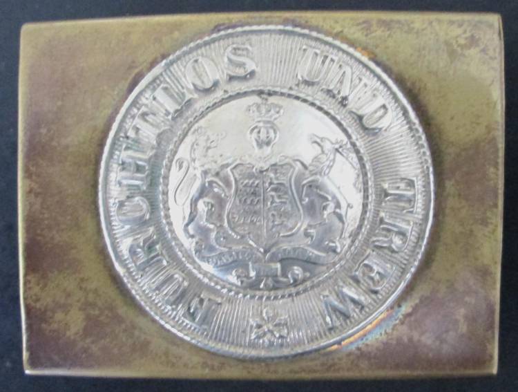 FIBBIA Mod. 1887 DELLA I G.M. DEL WURTTEMBERG DA TRUPPA IN OTTONE E ALLUMINIO. MOTTO: ´Furchtlos und Trew´.
