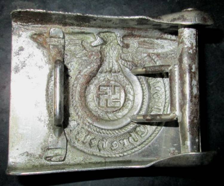 CINTURONE + FIBBIA SS TRUPPA USATA. PEZZI NON ASSENBLATI. CONSERVA TRACCE DI VERNICE ARGENTO.
