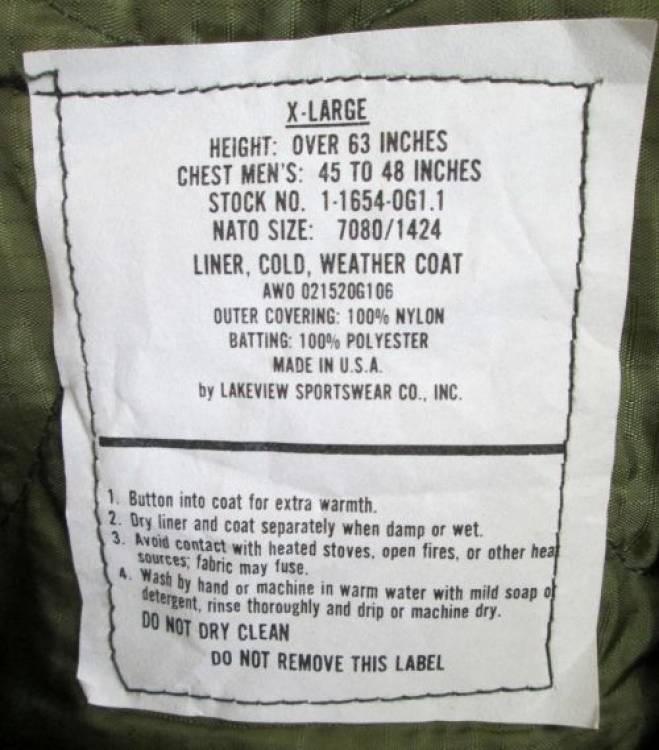 CONDIZIONI OTTIME. IMBOTTITURA PER GIACCA M.65.