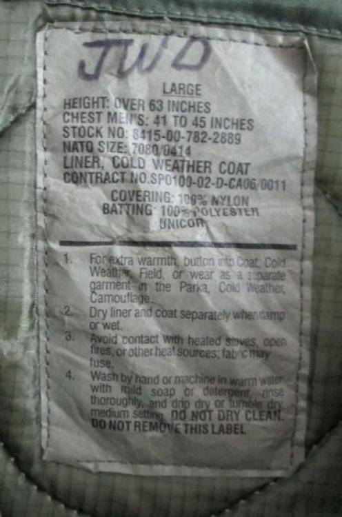 OTTIME CONDIZIONI. IMBOTTITURA PER GIACCA M.65.