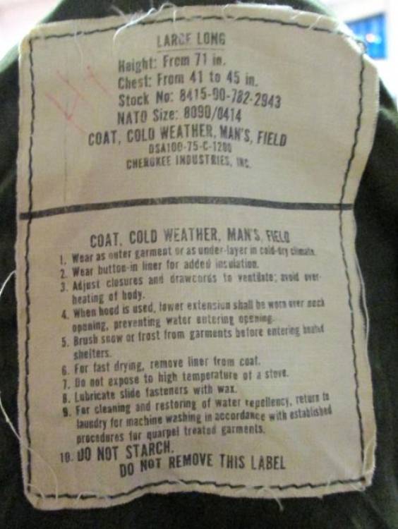 ´Coat, Cold Weather, Men´s Field´ del 1975.